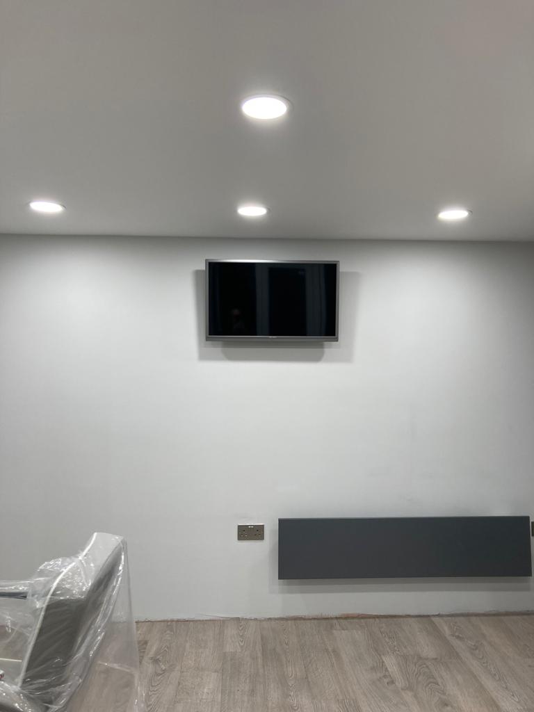 Commercial grade LED panels installed with dimming function and exterior lighting for client access.